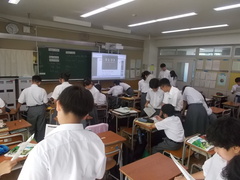 英語で道案内する内容です。まずは、教科書の文例をもとにして、よく使う定型の形を覚えて、それを使っていろいろな場面での道案内の会話を組み立てます。地図を見ながら、目的地までのコースを相手に伝えることはできましたか。互いに会話しながら、文章の形を理解して、必要な単語を覚えていきましょう。