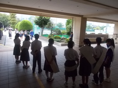 生徒会の選挙運動が始まりました。今朝は、立候補者がそろってピロティのところに立って、登校してくる生徒にあいさつ運動を行いました。今日の給食では、それぞれの立候補演説を放送します。立候補者をみんなが知り、それぞれの抱負を知ることで、これからの大森第三中学校を託せる生徒会を選べるようにしましょう。