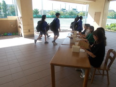 1年生は、10月1日(水曜)から移動教室にむけて、朝申し込みの受付をしています。事前学習にも取り組んできましたが、いよいよ当日が近づいてくる感じになりますね、よい旅になりますように。今回も、スクールサポート三中のみなさんと保護者のボランティアの方にご協力していただきました。いつもありがとうございます。