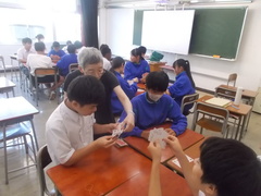 試験前、またトランプで計算問題中です。1学期よりも反応は早くなったでしょうか。正負の計算は、これからずっと、今回の試験範囲の文字式でも正負の数の計算はたくさん使います。定期考査前のよい機会です、素早く反応できるくらい正負の計算をしっかり定着させて、この基礎の上に、今数学で学習している内容を積み重ねていきましょう。