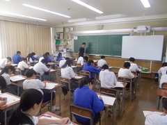 いよいよ定期考査が始まります。まだまだ暑い夏の陽ざしが差し込む教室で、黒板には今日の教科や時程が書かれています。テストが始まると、教室は静かに、時折問題をめくる音が響く中、みんな集中して取り組んでいました。定期考査は今日と明日の5教科です。これまでの準備がしっかり発揮されるとよいですね。