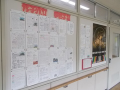 図書室に、京都奈良を特集したコーナーが設置されています。これは3年生の修学旅行が10月にあり、それに合わせたものです。また、3年生の廊下には、各自が調べた京都ならの名所旧跡のレポートが貼り出されています。資料を活用した事前学習を通して、当日が実りある旅行となるとよいですね。積み重ねた取り組みが、旅を思い出深くします。