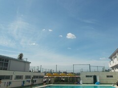 ここ数日で、だいぶ夏の空気から季節が進んだようで、湿気も気温もすっかり入れ替わったようです。それでも、みんなが入るプールの水面は、水泳の動きに合わせて波立ち、きらきらと夏の装いです。夏の日差しに上を見上げると、青空は澄んで、一直線に飛行機雲が描かれています。季節は進んでいます、行く夏を惜しみつつ、もう少し水泳を楽しみましょう。