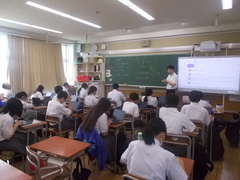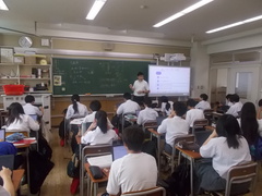 2年生の技術の時間、電気を使って温度を変える仕組みについての説明です。冷房は、液体が気体となる際に、気化熱として周りの空気を冷やすという仕組みを使って、冷却が行われます。気化熱は理科で学習した内容です。技術の授業内容が理科で学習したことからつながっています、学習内容はさまざまなところで活用されているのですね。