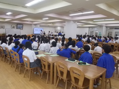 1年生は、明日からの移動教室の事前指導を学年全員が集まって行いました。明日からは、標高1500mの車山高原です。集団での生活ですから、自分の果たす役割をしっかり果たして、健康に過ごし、たくさん思い出を作ってきてください。明日からの、現地の気温は15度くらいです。高原のさわやかさを体感してきましょう。