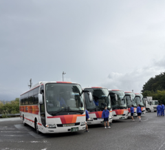 バスは中央道を下り、長野県に入りました。八ヶ岳PAで止まりました。空はあいにくの曇天です。行程は予定通りで、このあと午後はオリエンテーリングが控えています。雨での実施の予定ですか、天気はどうでしょうか。まずは休憩です。