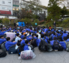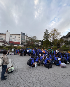 予定通りに宿舎に到着です。まずは、駐車場で、2泊3日の開校式です。ホテルの方からもお話しいただき、これまで頑張ってくれた実行委員を代表して、委員長のあいさつです。3日間の集団生活、これからよろしくお願いします