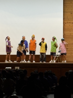夕食の後は、待ちに待ったレクリエーションの時間です。この日のために各クラス、たくさん準備をしてきました。その成果を舞台で発表します。各クラスの持ち時間は15分ずつ、笑ったり、見入ったり、学年がまとまって楽しむ時間にしましょう。