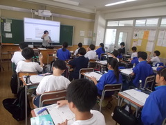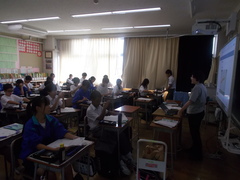 1年生の国語の時間、書写の学習になりました。墨と筆を使って字を書いていきます。美しく整った字が書けるように、筆の持ち方や「とめ」「はね」「はらし」などの基本的な筆遣いを学んでいます。手本をよく見て、何度の練習していくことが大切です。ゆっくりと筆を動かしていくと、気持ちも落ち着いてきます。よい作品を仕上げていきましょう。