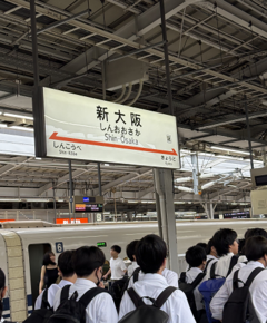 新大阪には定刻通りに新幹線は滑り込みました。駅名標をみるとはるぱる来たことが感じられます。ここからは、クラスごとにバスに乗り込んで、奈良の法隆寺に向かいます。しかし、天候は雨、バスのフロントガラスをたたく雨粒が、結構な雨を感じさせます。台風の余波でしょうか、回復するとよいですね。