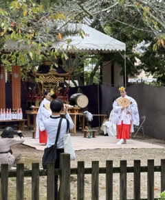 法隆寺の境内にある斑鳩神社では、ちょうど秋の大祭を行っていました。今日はうらやすの舞の奉納のところにちょうど出くわしました。歴史を感じさせてくれるシーンに偶然出会えたこと、よかったですね。旅先でのこうした偶然は印象深い思い出となります。