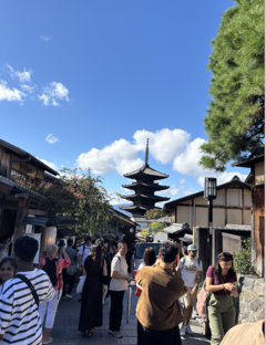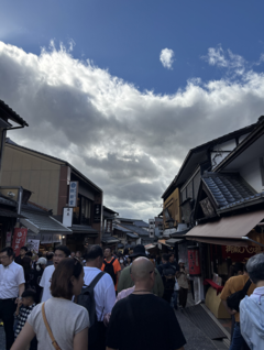 今日は三連休で、京都の人込みも多いです。清水寺に向かう、産寧坂も多くの人でにぎわっています。ゆったり周りを眺めながらとはならないですが、まずは山門まで上がって、清水寺の舞台から京都市内の一望ができるところまで散策しましょう。