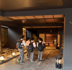 今日の宿舎、花かんざしに到着です。移動しながら、奈良や京都のポイントをたくさんの見学をしました。また、下調べはしていたとはいえ、見知らぬ土地で電車やバスを乗り継いでの行動は、ちょっとドキドキの経験になりました。それでも宿舎到着です。まずは部屋で休んで、スケジュールに沿って行動していきましょう。