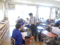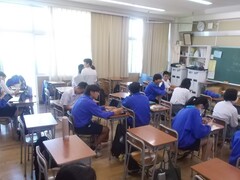 2年生は、職場体験の振り返りとして、お礼状を書いたり、事後発表会のスライドの割り振りを考えたりと、3日間にどんな体験をしたのかを、思い出しながら、プリントにまとめています。こうした振り返りをすることで、そのときに自分が考えたことを整理して考えることができます。体験を自分の進路を活かす大切な時間です。頑張って進めましょう。