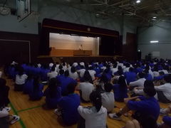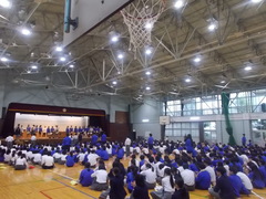 6校時に、生徒会集会を行いました。後期の委員会がスタートするにあたり、生徒会長、専門委員長に委嘱状をお渡ししました。生徒みんなで、これからの学校生活をよりよくしていくために一生懸命役割を果たしていってください。生徒会を中心とした一人ひとりが学校をよりよくしていこうとする取り組みは、将来の自分につながっています。また、あわせて、先日行われ多数の選手が入賞した区陸上選手権大会の表彰を行いました。