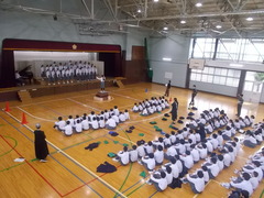 1年生は、合唱コンクールにむけてリハーサルを行っています。全員で合唱したあとに、各クラスが課題曲を歌います。入退場の練習も目的とはいえ、みんなが聴いている前で歌うのは緊張します。また、他のクラスの仕上がりはどうかも気になります。あと3日で当日を迎えます。今日の機会を活かして、自分たちの合唱を完成させていきましょう。