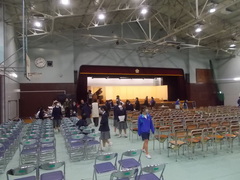 午後の時間、明日のコンクールにむけて各教室とオンラインで結んで、鑑賞のしかたなど事前学活を行いました。先生の話を聞きながら、いよいよ明日だという気持ちになってきます。その後、会場の設営やリハーサルなどに取り組んでいます。自分の役割にしっかりと取り組んでいる姿から、明日への期待感が感じられます。明日、よい合唱コンクールにしましょう。