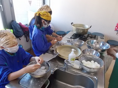 地域の行事で、本校の生徒たちが、ボランティアでお手伝いに取り組んでいます。おもいやりカレーの仕込みではたくさんのゆで卵と格闘中です。また、ホールに出入りする方にチラシの配布をしたりと、さまざまに活動していました。こうした機会が、地域の中の一員としての意識も高まります。これからもボランティア、多くの生徒に体験してほしいです