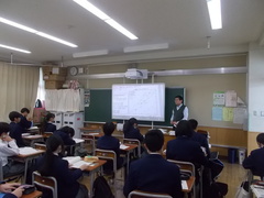 今日は、日本の気候の特徴について、みんなで先生の話を聞きながらの学習です。雨温図や地図を見ながら、各地の気候について考えています。グラフの様子からどの時期にどのくらい雨が降るか、温度はどのくらい変化するかなど、グラフから読み取れることはとても大切です。さらにグラフから、その土地ではどんな様子かをイメージできるとすごいですね。