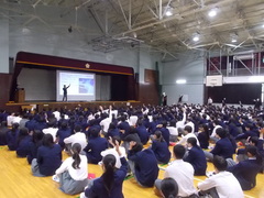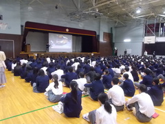 三中の代表として、この夏休みに海外派遣にいった2年生の生徒による発表会を行いました。合唱コンクールの午後に実施の予定が延期となっていたものです。スライドをもとにアメリカとオーストラリアに滞在した様子を英語でスピーチしてくれました。海外での生活のこと、食事や文化のこと、コミュニケーションについてなど実際の体験談を楽しく紹介してくれて、充実したホームスティの様子が伝わってきました。ありがとうございました。