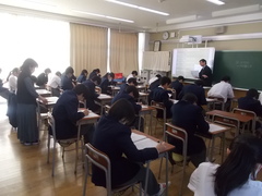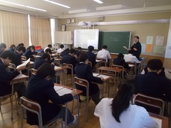 この土日は、テスト勉強ははかどりましたか。週明けの2日目、社会の時間、2年生は集中して問題用紙と格闘中です。試験時間も半ば、社会の先生が質問などで教室を回ってくれています。テストは頑張ってくれているかな、とみんなの様子を見守ります。さあ、あと半分、最後までしっかりと頑張っていきましょう。