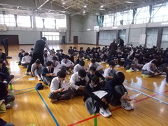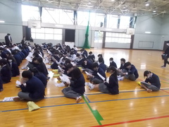 金曜日に、3年生は11月23日(日曜)に行われる、中学校英語スピーキングテスト(ESAT-J)の事前指導を行いました。まずは、受験票と当日の注意の説明書を配ります。みんな手元にきた自分の受験票をしっかりと確認していました。まずは、時間通りに受験会場に集合して、自分の英語の力をしっかり発揮できるよう、準備と確認を着実に進めましょう。