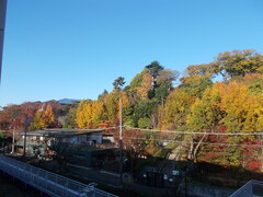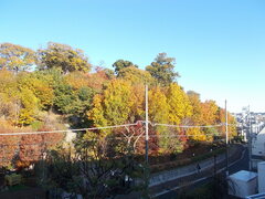 昨日の曇天、そして雨もあがり、朝から良い天気です。ここのところの寒暖の差で、どんどんと木々の色づきが進み、さらにちょうど紅葉も洗われたようで、今日は朝日を浴びて、とてもきれいに映えています。よく見ると、同じ紅でもいろいろな色があります。1年にこの時期だけの景色、窓からも目で愛でて、季節の移ろいを感じてみましょう。