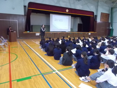 2年生に、がん教育のお話をしていただきました。がんの現状や発症の原因、生活習慣や予防や発見などについて、自分たちの生活に結びついて考える機会となりました。今回の機会を契機として、今の生活や将来について、がんについて正しく認識をもつことが大切です。校医の先生には、貴重なお話をいただき、ありがとうございました。
