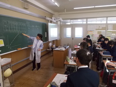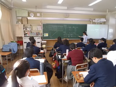 2年生の理科、マグネシウムと酸素の燃焼実験結果をもとに考察しています。質量を変えて実験した結果をもちより、表にまとめ、グラフに書いていきます。直線のグラフとなることから、比例の関係があることが突き止められ、縦と横の比率からマグネシウムと酸素の比が求められるのですが、そこまでわかるとは数学はすごいですね。グラフの力は大切です。