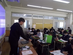 1年生の理科で、岩石の観察のまとめです。前の時間に火山灰を観察して、それをもとにさまざまな岩石の特徴と生成の過程についてプリントやワークでまとめていきます。岩石の構成から、どのように生成されてきたかがわかります。手元の石でも、そうなるまでにさまざまに過程を経てきたことをイメージすると、自然を見る目が変わってきますね。
