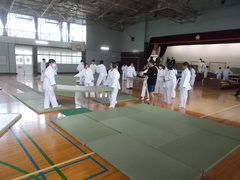 2年生の柔道の授業が始まりました。体育館で柔道の授業をするために、畳を敷いて準備をすることから始まります。みんなで、畳を運んで隙間なく敷き詰めていきます。さすが2年生、手際よく敷き詰めていきます。最後にストッパーを噛まして、それでは授業を始めます。今日もよろしくお願いいたします。