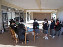 今朝は、社会科見学の申し込みをスクールサポート三中のみなさんがご協力していただき、受付けていただきました。いつもご協力ありがとうございます。1年生の社会科見学は、2月10日(火曜)です。冬休みから事前学習などに取り組んでいますので、だんだんと待ち遠しくなってきました。しっかり準備して、実り多い社会科見学にしましょう。