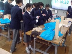 1年生の技術の授業、修正をしたり、仕上げのニス塗をしたりと昨年から続いていた本棚の作業も佳境に入っています。切り出した材料が、組みあがってくると完成への道筋がみえてきたように感じます。組み立てているときに気が付いた改善したらよいところなどを、覚えておくと、今後、自分が何か木工作業が必要なときに役立つことでしょう。