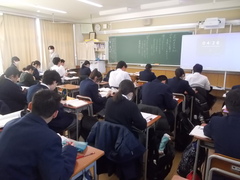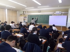 2年生の国語、「走れメロス」を経過ごとに、表現から真意を読み取っています。メロスは王のもとへなぜ走ったのか、場面ごとにノートにまとめたり、教科書にマーカーで記したりして考えていきます。文章は、字面だけを追うのではなく、作者の意図や登場人物の気持ちを文中の言葉から読み込むことが、真意を正しくとらえ、読み込むことになります。