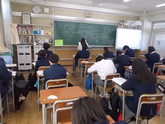 お隣の2年生のクラスでは、同じ電気の話ですが、理科で電力量の学習です。電力量=電力×時間となりますが、いざ、練習問題に取り組んでみると、単位換算の壁が立ちはだかっています。時間の単位は秒にするためには・・・。kJにするには、0をいくつとって・・・。だんだんと混乱の単位の世界に迷いこみそうです。気をつけて計算していきましょう。