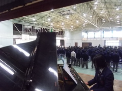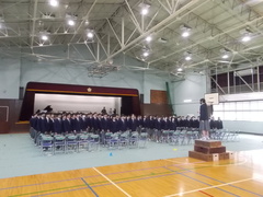体育館で、3年生が合唱練習をしています。あと2週間で卒業式、みんなが3年間がんばった中学校生活の最後の行事です。いよいよ卒業式の練習も始まり、卒業式までが実感できるようになってきました。今日は式で披露する合唱の練習です。3年間の思いを込めて、しっかりと取り組んでいます。よい式にしましょうね。