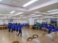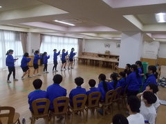 1年生の体育の授業、創作ダンスに取り組んでいます。これまでにグループごとに振りを考えて、みんなが揃うように何回も練習していたのですが、今日はその成果を披露するダンス発表会です。グループごとにクラスのみんなの前で踊ります。見ているみんなも手拍子で応援、和気あいあいとした雰囲気で、どのグループも頑張りました。