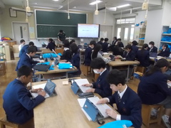 1年生の技術の授業では、タイピングに取り組んでいます。2000字くらいある検定の問題に挑戦です。最近では、AIが調べたり、文章まで作ってくれてコピペでなんとかなってしまう場面が多いですが、自分の考えを表現したりするのは、入力は大切な役割を担っており、やはり大切な技術です。みんな、真剣に指を動かして、集中して取り組んでいました。