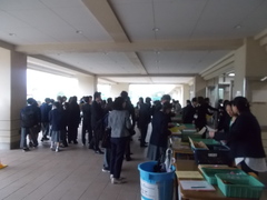今日は入学式です。桜の花も今日を待っていたかのように、咲き誇りました。そうした中、真新しい制服に身を包んだ1年生が登校してきています。これからの中学校生活で、さまざまな活動に取り組んでいきます。まずは入学式、緊張感と期待感をもちながら、受付を経て、みんな教室に入ってきました。これからの中学校生活、楽しく充実させていきましょう。