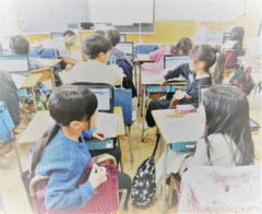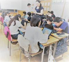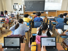 昨日の授業の様子です。4年生は理科「電流のはたらき」の学習でした。「モーターの回る向きは何によって変わるか」という課題のもと、予想を立て実験し結論を導きました。5年生は社会「あたたかい地方のくらし」ということで、学習課題をこどもたちが選択しグループごとに調べ学習に取り組みました。