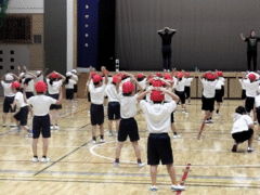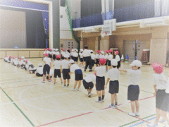 運動会の練習ですが、各学年とも今は体育館を中心に行っています。来週中には「校庭デビュー」となりそうです。今日は1年生と6年生の様子をお知らせします。