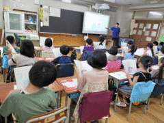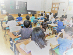 1学期はあと3日になりました。校内を回りますと、通常の学習に加え夏休みの準備をしている学級があります。2年生は関係諸機関からのプリントを配り教師が説明を加えているところでした。また、4年生はそろばん(珠算)に取り組み、教師が示した通りにこどもたちが玉を置く練習をしています。私の近くにいた子たちは、全員正しく置けていました。明日は「お楽しみ会」を開く学級がありそうです。