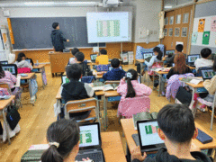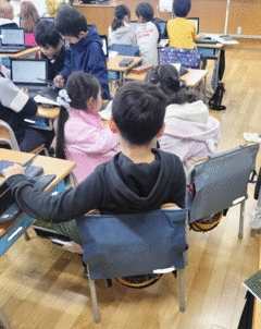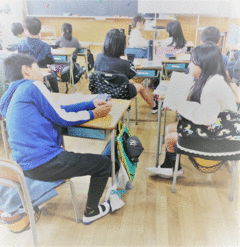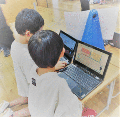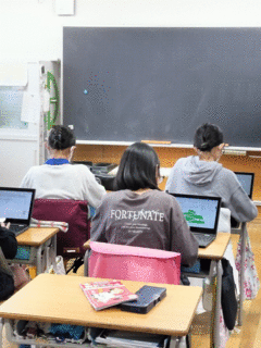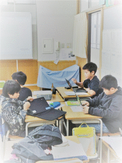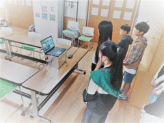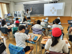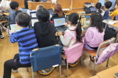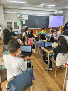学芸会の練習が各学年で始まっています。本コーナーでも適宜紹介していきます。1,2年生は場面ごとに台詞合わせをしています。次に授業の様子です。5年生の理科は一人一台端末を使用し「流れる水のはたらき」について学習していました。流れる水により土は3つの変化をもたらすという内容でした。次時は実験をする予定です。