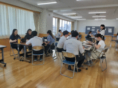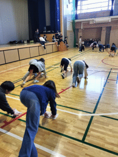 午後は不在にするため、1時間目に校内を回りました。体育館では3年生が開脚前転、後転に取り組んでいます。特に後転については、教師が試技をしながら解説するとともに個別指導を充実させました。グループの中でも「コツを教えて」というやり取りがあり、教え合っている様子がわかります。また、最後の片付けでは見学者が進んで手伝う姿が見られ、微笑ましく感じました。