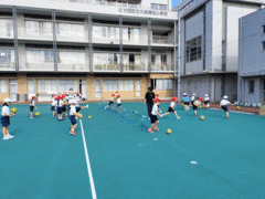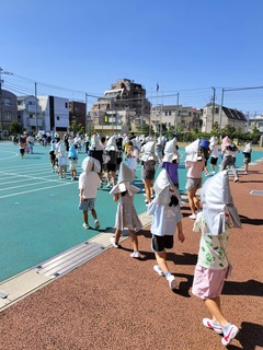 予報によると、今週後半には暑さが一段落するとのこと。2時間目は1年生が「チェッコリ玉入れ」をしていました。運動会で実施することがある玉入れです。また、その後の中休みでは、養護教諭による「校庭で遊べます」という放送に歓声があがり、元気に体を動かしています。
