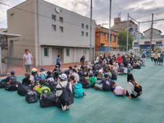 今日は、火災想定の避難訓練を行いました。校庭に一番早く並んだ2年生は全員が揃うまでの間、立派な態度で待っていました。私からは(1)放送をよく聴くこと(正確な情報を知ること)(2)先生の指示を聞くこと(3)特に火災の場合は、煙が体の中に入らないようにすることを話しました。その後、2,4,6年生は煙体験をしました。