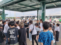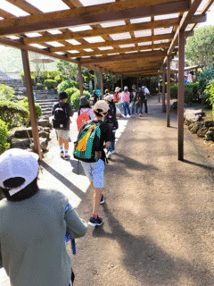 今日から3日間5年生と伊豆に行きます。ご覧のように8時15分からの出発式に備え5分前行動ができています。電波状況によりますが、可能な限り更新してまいります。海老名SA出発、みんな元気です。伊豆マリンタウンを出ました。波がやや高いですが、よい天気です。シャボテン公園には予定より早く着きました。とても暑かったので、屋根のある大講堂で昼食をとり班ごとの活動にしました。有名なカピパラの露店風呂は、11月下旬からとのこと。15時前に学園到着。開園式、夕食、そしてキャンドルファイヤーの様子です。なお、今年は私の出番がありません。今日の更新はこれまでとします。※この時間になるとつながりやすくなることがわかりました。