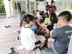 最終日は、予報に反して朝から薄日が差し込んでいます。風は弱く昨日のような肌寒さはありません。台風は着実に接近しているようですが、こちらにはそのような兆候は皆無です。朝会、朝食、閉園式の後、学園10周年記念事業であるキーホルダー作りに取り組みました。これにて伊豆からの更新は終了いたします。保護者の皆様には、海老名SA到着時から随時メールにて到着予定時刻等をお知らせします。