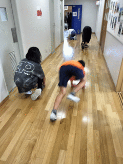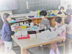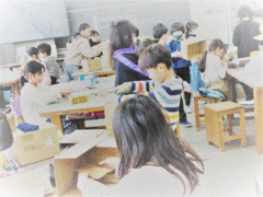 3年生の図工の様子です。「はこの中の世界」の1時間目ということで、段ボールカッターの使い方について教師はこどもたちを近くに集め説明しました。その後、制作にとりかかります。完成が楽しみです。また、午後は就学時健診です。6年生が1階廊下と体育館をからぶきし、会場づくりを担います。5年生は未就学児を連れて会場を案内します。高学年、頑張ってます!