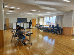 今日は8時15分に学校を出発したため、副校長先生に写真をお願いしました。後期の委員会委員長集会と避難訓練の様子です。前者は校長室からオンラインで配信します。一番早い委員長は8時前に来ました。立派な態度で決意を発表できたと思います。後者は地震想定の訓練の後、起震車体験をしました。校庭への避難完了が5分を切ったそうです。※みらい学園の移動教室に行くため、次回の更新は来週といたします。